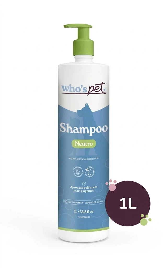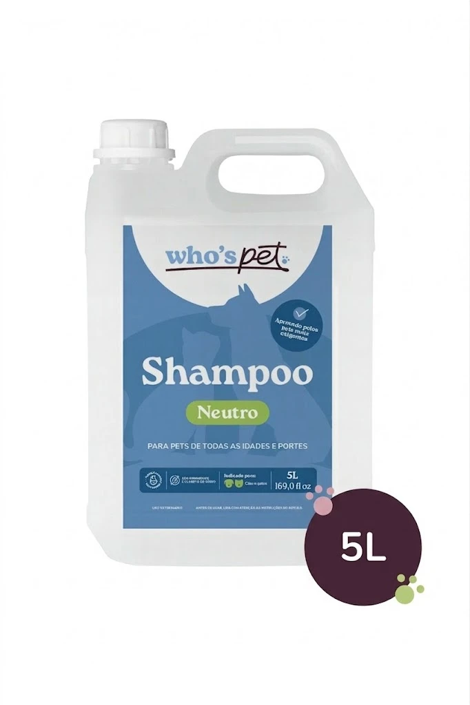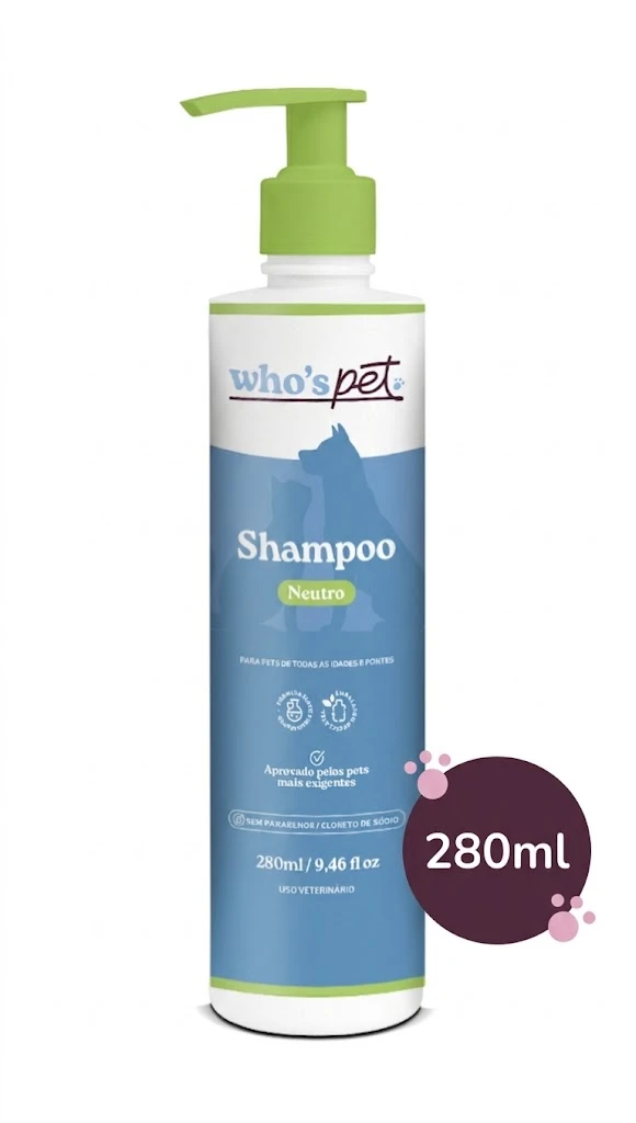O Shampoo Neutro Who’s Pet foi desenvolvido para limpar delicadamente a pele e os pelos do seu pet, removendo impurezas sem agredir a sensibilidade da pele.